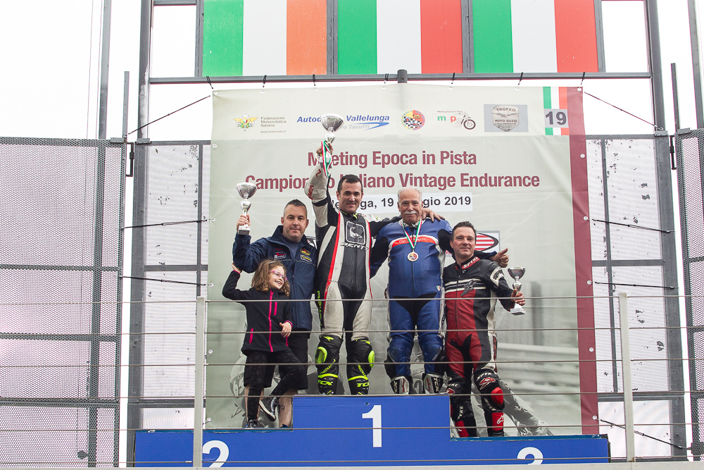 Allo spegnersi del semaforo è Yuri Frigenti ad involarsi verso la prima curva, ma Jarno Ronzoni non ci sta e dopo poche centinaia di metri si mette al comando, mostra subito un buon feeling con l’asfalto misto e il suo assetto da bagnato staccando gli avversari nei primi giri e mantenendo un distacco di sicurezza fino alla bandiera a scacchi. Frigenti giungerà quinto assoluto e secondo di categoria davanti a Giuseppe Michelotto che con uno pneumatico posteriore da asciutto e uno anteriore da bagnato impiega qualche giro per prendere un buon ritmo.
